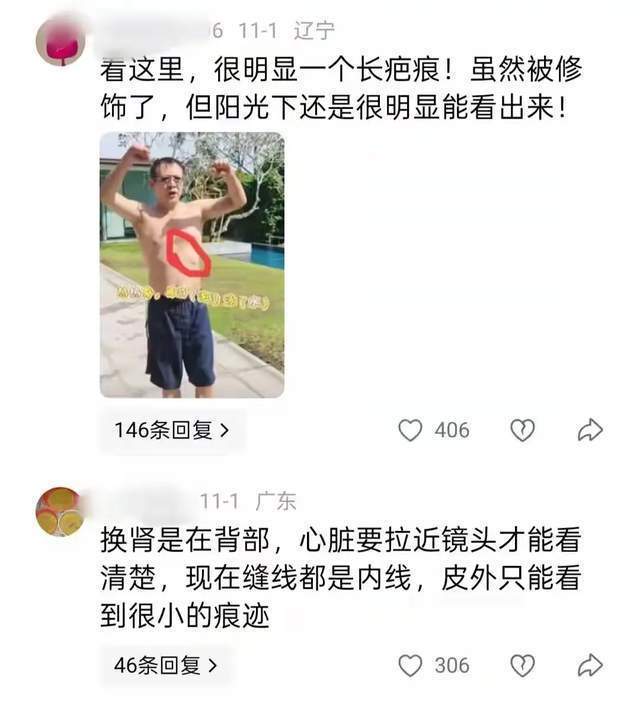 而他光滑的胸前和光洁的后背,一点手术的疤痕都没有。如果按照传言“换心”做了心脏移植手术,手术痕迹必然会留下非常清晰明显的疤痕,而他光滑的胸腔恰好就是证据,算是一次无声力证清白的过程。