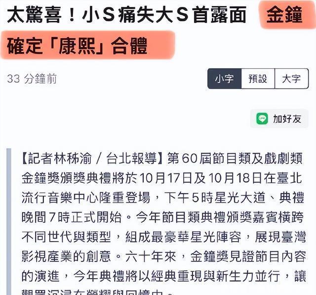 一场金钟奖即将成就两个名场面:小S复出以及“康熙组合”合体。