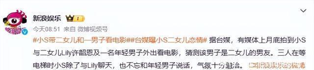10月15日,有台媒爆料称,拍到了小S陪二女儿Lily许韶恩看电影逛街的画面。