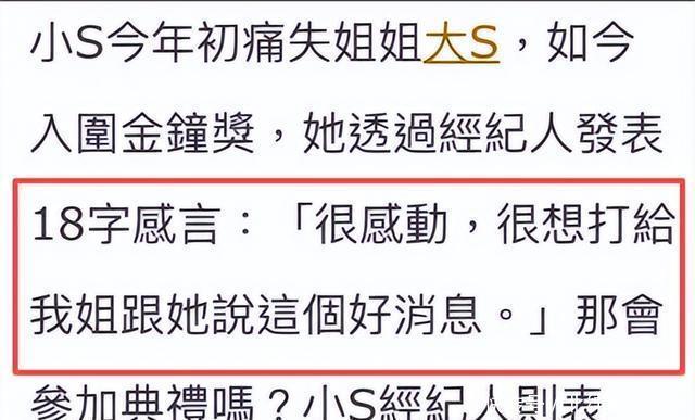 现在节目再次入围金钟奖,小S收到喜讯后无疑备受鼓舞,她很激动的表示:“很想打给我姐跟她说这个好消息。”